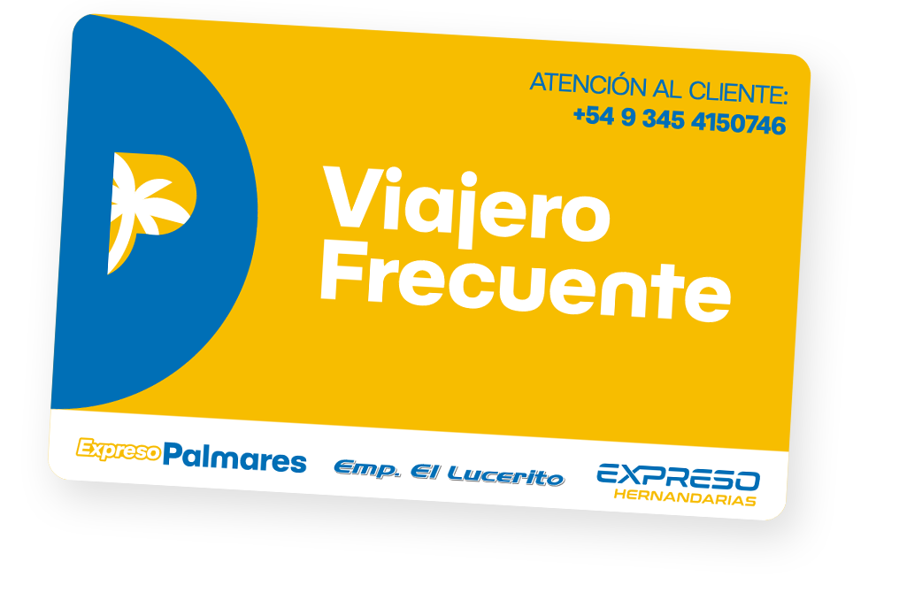 Elegí tu destino,nosotros te llevamos Turismo Turismo y experiencias Seleccionamos los mejores destinos de Argentina para que viajes todo el año con todo el confort y la seguridad. ¡Elegí tu próximo destino! Transporte larga distancia Conectamos los principales puntos de Entre Ríos. Comprá tu pasaje media distancia Toda la información para tu recorridos diarios. Más info aquí línea urbana Toda la información para tu recorridos diarios. Más info aquí Planificá tus vacaciones ¡Solicitá nuestras salidas de verano en un solo click! ¡Contactanos ahora! expreso palmares Sacá tu boleto para viajar a Chajarí, Los Conquistadores, Federal, Sauce de Luna, Bovril, Alcaraz, Hasenkamp, Paraná, Concordia, General Campos, San Salvador, Villa Clara y Villaguay. Devolución Online Quiero devolver mi boleto online accedé a Descuentosen tus viajes con El Lucerito y Expreso Palmares ¿Quienes somos? Turismo Palmares es una empresa familiar con más de 30 años de experiencia en servicio de transporte de pasajeros en la Provincia de Entre Ríos. ¡Estamos siempre en movimiento!. Innovamos constantemente para mejorar y ofrecer servicios de calidad. Nuestro mayor compromiso es ofrecer la mejor atención y garantizar la seguridad de nuestra comunidad viajera..Desde Concordia, te llevamos a los principales puntos de Entre Ríos y los mejores destinos del país, todo el año. Nuestros Valores